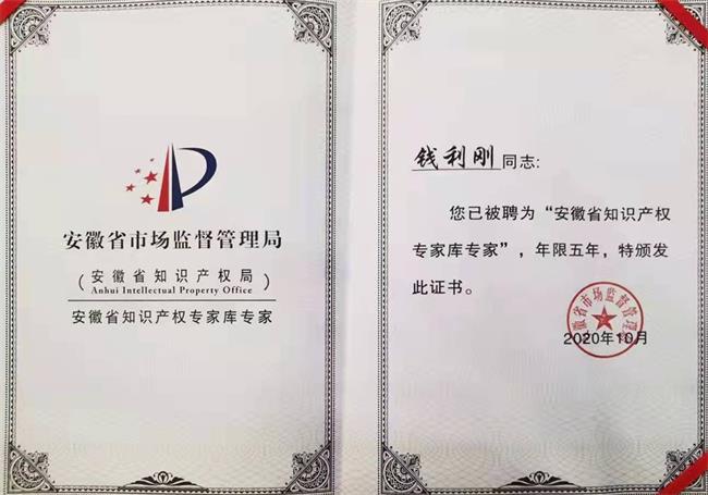 科技無限 創新不止—恭喜我公司錢利剛副總被聘為“安徽省知識產權專家庫專家”